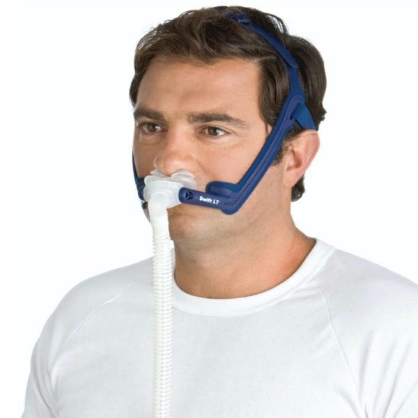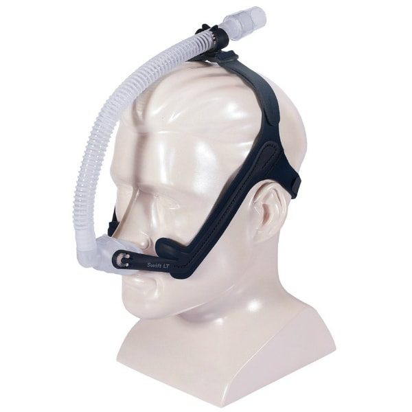 Модель канюль Swift LT от Resmed можно использоваться с любыми аппаратами для терапии CPAP и BiPAP. Ремешки наголовника можно легко отрегулировать, настраивая данную маску на узкое или широкое лицо. Маска при этом будет плотно прилегать к лицу, что очень удобно во время сна, так как позволяет спать на боку.